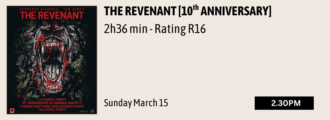 THE REVENANT [10th ANNIVERSARY] - the epic masterpiece is back on the big screen for one show only. Tickets just $14 each.